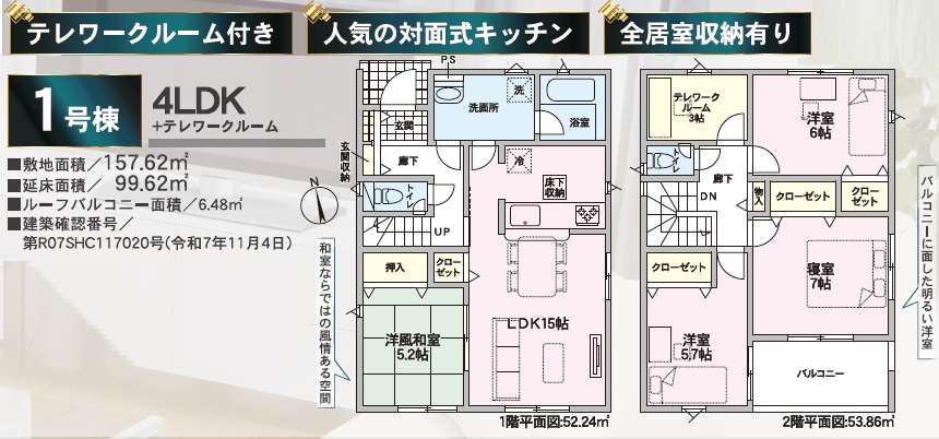 三島市幸原町第2 新築戸建全1棟 本物件のおすすめPOINTS 徒歩圏内に商業施設あり!生活環境良好♪ JR東海道本線「三島」駅まで1.5km 収納スペースたっぷりございます! この物件のお問い合わせはこちら(24時間受付中) 今すぐ電話にてお問い合わせをする(受付時間:9~19時) 所在地 三島市幸原町二丁目52番9 交通 JR東海道線「三島」駅徒歩21分 価格 2,980万円 間取 2LDK+S 土地面積 99.73㎡(30.16坪) 建物面積 82.62㎡(24.99坪) 用途地域 第1種中高層 引渡 相談 建ぺい率 / 容積率 60% / 150% 建物完成 2026年3月 接道状況 西側約4.0m私道 地目 宅地 設備 公営水道 公共下水 個別プロパンガス 東京電力 学区 徳倉小学校・北中学校 取引態様 媒介 備考