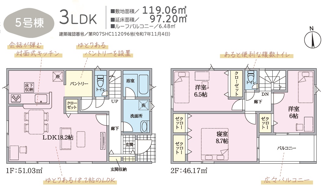 函南町仁田第11 新築戸建全5棟 本物件のおすすめPOINTS 全棟LDK15帖以上! カースペース2-3台駐車可♪ この物件のお問い合わせはこちら(24時間受付中) 今すぐ電話にてお問い合わせをする(受付時間:9~19時) 所在地 函南町仁田826-5 交通 伊豆箱根鉄道駿豆線「伊豆仁田」駅まで徒歩17分 価格 2,880万円~ 間取 3LDK~ 土地面積 119.06㎡(36.01坪)~ 建物面積 93.96㎡(28.42坪)~ 用途地域 第1種中高層 引渡 相談 建ぺい率 / 容積率 60% / 150% 建物完成 2026年3月 接道状況 西側約4.0m公道 地目 宅地 設備 公営水道 公共下水 個別プロパンガス 東京電力 学区 函南小学校・函南中学校 取引態様 媒介 備考